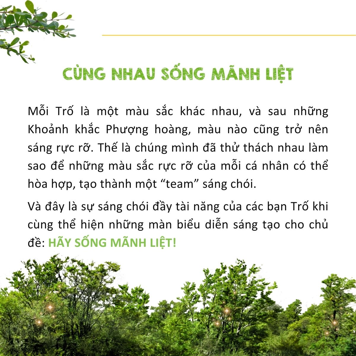🔥"Khoảnh khắc Phượng hoàng"🔥 - chủ đề Tiệc Tất niên 2023, được lấy cảm hứng từ khoảnh khắc tái sinh từ tro tàn của hình tượng Phượng hoàng với mong muốn truyền cảm hứng để tất cả thành viên Tổ Trố chọn sống nguyên mẫu, mãnh liệt và tái sinh trong từng khoảnh khắc của năm mới, từ đó góp nên sức mạnh nội tại cho Khu rừng Dale Carnegie Việt Nam.